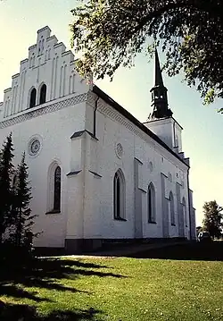 The former Cistercian church, laid out according to the plan of Saint Bernard, is now the chapel of Brahetrolleborg. The church was constructed between c. 1250 and 1325. The church's tower was an addition made between 1868 and 1870.[14] The church possesses a crucifix sculpted by Claus Berg around 1500.