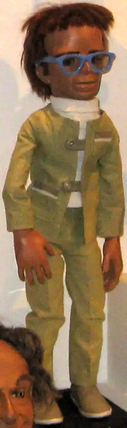 According to series co-creator Sylvia Anderson, Brains was conceived as "yet another version of our regular boffin-type characters who had appeared in all our previous series".[4] She compares the character to Professor Matthew Matic (of Fireball XL5) and George Lee Sheridan, nicknamed "Phones" (of Stingray).[4] Brains has also been viewed as an updated version Dr Beaker (of Supercar), an eccentric scientist who similarly stutters.[4][5] The likeness of the Supermarionation puppet was influenced by the appearance of American actor Anthony Perkins.[6]