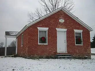 The Braintree School stands in central western Pawlet, at the southwest corner of Warren Switch Road and Vermont Route 153. The small property includes a single-story brick schoolhouse and a small wood-frame structure that served historically as an outhouse and woodshed. The school is built of red brick, laid in American bond, with a gabled roof. It measures 22 by 27 feet (6.7 m × 8.2 m), with the long axis oriented parallel to Warren Switch Road. The main entrance is in the east façade, facing Route 153, centered between two sash windows, with a small oval opening above that houses a wooden panel identifying the building. A secondary entrance is located on the south side, sheltered by a small gabled porch. A bank of windows, added in the 1930s to meet state requirements, occupy the west facade. The outhouse/woodshed, originally located directly adjacent to the school, was moved about 20 feet (6.1 m) behind it, in order to provide for improved drainage around the school. The interior of the school has a small foyer, and a single classroom.[2]