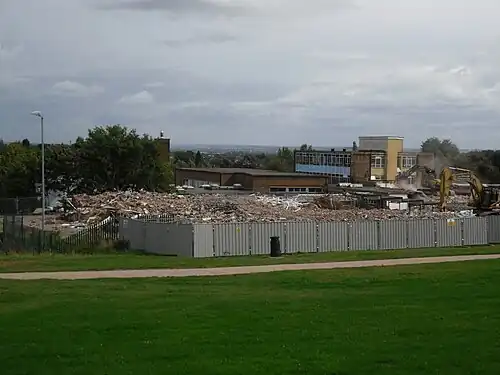In the Summer of 2009 demolition of the unsafe blocks in the upper school was completed, demolishing the science block, 3 storey tower block, and the 6th form block, leaving the gym, changing rooms, barn, and the art and music block, built by more recent construction. Prompt demolition was favoured to reduce the running costs of empty buildings.[32]