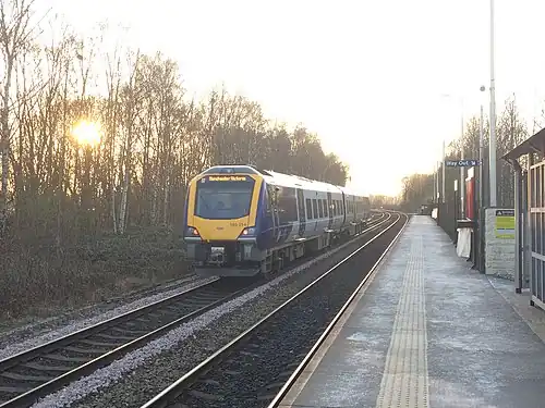 Bramley railway station serves the suburb of Bramley, Leeds, England. It lies on the Calder Valley line 4 miles (6 km) west from Leeds.