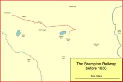 The Brampton Railway was a mineral railway built in 1798 to bring coal from workings on Tindale Fell to staiths at Brampton. It was a development of short sections of earlier wooden railways.