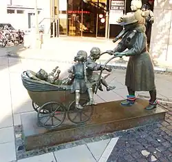 Symbols for the borough include the Brand Bull, which is commemorated by a bronze statue at the center of Brand. It likely stems from the town's association with the horn of Pope Cornelius on the coat of arms, and is meant to symbolize residents’ obstinacy.