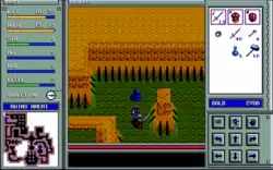 Brandish is a top-down view dungeon crawler game. The original version of the game uses mouse controls from a real-time overhead view, where the player can move the warrior character Ares (known as Varik in the English version[2]) forward and backward, turn, strafe, and attack by clicking on boxes surrounding the player character. The player's objective is to escape from a labyrinth of over 40 floors in 5 different areas such as the 'Ruins', 'Tower', 'Cave', 'Dark Zone', and 'Fortress', each filled with various monsters, traps and puzzles.
