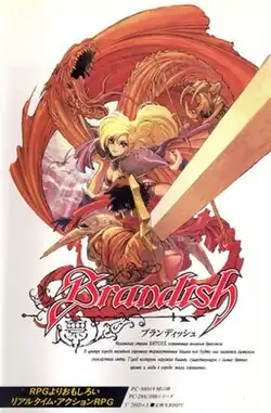 Brandish[1] is a 1991 action role-playing game developed and published by Nihon Falcom. Originally released in 1991 for the NEC PC-9801 and FM Towns, it was later ported to the Super NES and PC Engine CD-ROM² in the mid 1990s, including an expanded re-release titled Brandish Renewal. The game was the first in the Brandish series and was followed by three sequels. A remake, Brandish: The Dark Revenant, was released for the PlayStation Portable in Japan in 2009 and worldwide in 2015.