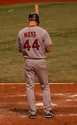 During the MLB Japan Opening Series 2008 at the Tokyo Dome, Moss hit his first major league home run.[4][5][6] After playing the first two games of the season, Moss was optioned back to the Triple-A Pawtucket Red Sox on March 26.[7] He was recalled on April 29, and was batting .286 on May 3 when he was diagnosed with appendicitis and brought to the hospital for an emergency appendectomy.[8]