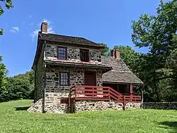 The Gideon Gilpin House, once the home of a prosperous Quaker farmer and his family, served as quarters for the Marquis de Lafayette before the battle[10][11] and he was brought back to it when he was wounded in combat.[12] The house was pillaged by the British after the battle.[10][11]