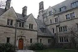 Branford College was named for the nearby town of Branford, Connecticut, where Yale was briefly located.[1] The base of Harkness Tower, one of the university's most prominent structures and one of the tallest free-standing stone structures in the world, forms one corner of Branford's main courtyard. The tower contains a 54-bell carillon. Frank Lloyd Wright is said to have been asked where he would choose to be if he could be anywhere in the U.S. and responded that he would pick Harkness Tower so he would not have to look at it. Since Branford's courtyards have many squirrels, the college adopted the squirrel as its mascot.