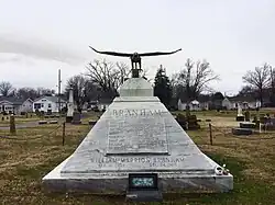 Branham's father owned a farm near Utica, Indiana, and took a job working for O. H. Wathen, owner of R. E. Wathen Distilleries in nearby Louisville, Kentucky.[18] Wathen was a supplier for Al Capone's bootlegging operations.[19] Branham told his audiences that he was required to help his father with the illegal production and sale of liquor during prohibition. In March 1924, Branham's father was arrested for his criminal activities; he was convicted and sentenced to a prison.[20] The Indiana Ku Klux Klan claimed responsibility for attacking and shutting down the Jeffersonville liquor producing ring.[21]