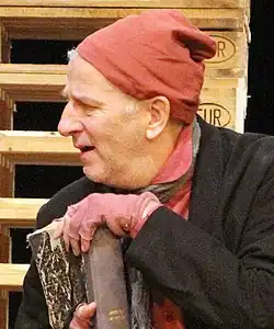 ![]() Brstina acting in the Carlo Goldoni play The Servant of Two Masters (directed by Boris Liješević) in 2012 | |