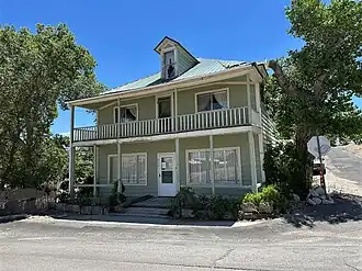 The Brann Boardinghouse is a historic boarding house located on Bryan Street in Tonopah, Nevada. The 2+1⁄2-story building is the largest wood-frame residence in Tonopah. The building's design includes a two-story porch with a balustrade along the second floor, molded cornices, boxed eaves, and a hipped roof; the inside has 18 rooms connected by two central hallways, one on each floor. Mrs. A.J. Brann built the boarding house in 1906. It was one of many boarding houses built in Tonopah to house the community's miners. The house is now one of only four boarding houses remaining in Tonopah.[2]
