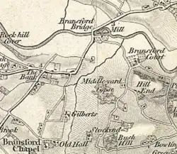 The origins of the name 'Bransford' are uncertain, but it is believed to mean 'hill-top ford' or 'ford at Bragen'. This is derived from 'braegen', old English for crown of the head or topographically a hill and then 'ford'.[4] In Domesday Book, Bransford was called Bradnesforde and included information about Urso from the Pershore Church and mill.[5] Bransford was home to Wulstan de Bransford, the Bishop of Worcester from 1338 to 1349.[6] Following the Poor Law Amendment Act 1834 Bransford Parish ceased to be responsible for maintaining the poor in its parish, a responsibility transferred to Martley Poor Law Union.[7] In the 1870s, Bransford was described as