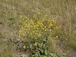 Brassica elongata, the elongated mustard[1] or long-stalked rape,[2] is a species of the mustard plant that is native to parts of Central Europe, Eastern Europe, the Balkan Peninsula, the Caucasus, Morocco and parts of Central Asia. Through plant invasion this species has become naturalized in many other parts of the world. Some of these naturalized regions include South Africa, North Western Europe, Australia and North America.[3] Given the wide range of climate and ecological conditions of these regions, B. elongata has been able to disrupt the ecosystems of their native plant habitats and has been label as an invasive species in many of its naturalized zones. In North America, this species is often found as a roadside weed in the southwestern states, particularly in the state of Nevada.[4] Studies allude that the Cruciferae might have migrated through the Bering land bridge from what is now Central Asia.[4] Commonly known as the long-stalked rape or as langtraubiger Kohl in German, this species is a close cousin to Brassica napus (rapeseed) and a secondary genetic relative to B. oleracea (kale).[3] As a close genetic species of the rapeseed, the long-stalked rape has one of the highest counts of accumulated polyunsaturated linoleic and linolenic acid.[5][6] Both compounds are heavily used to manufacture vegetable oils. Brassica elongata has the propagative potential of turning into a horticultural product from what is currently a noxious weed.[3][5]