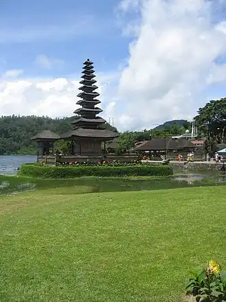 Bratan or Catur or Tjatur contains three caldera lakes at the north of Bali island. The volcanic complex covers an area of 11 by 6 kilometres (6.8 mi × 3.7 mi). The largest post-caldera cone within the complex is Gunung Batukaru.[1]