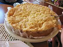 The most typical dishes of Rio Grande do Sul cuisine are churrasco, chimarrão, arroz carreteiro, fried polenta, galeto, cuca, and sagu, among others.[16][17] In the region there is a large consumption of wine, grape juice and white grape juice due to the south being the largest grape producer in the country, and artisanal cheeses and salamis.[18][19] In the region, fig, grape and peach jellies and jams are also very common. One of the most famous is chimia. The consumption of vegetables preserved in water, vinegar, sugar, salt and spices, such as beets and cucumbers, is also typical of the Southern Region.[20]