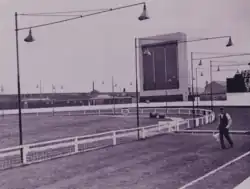 The dangers of early racing were evident when during a meeting in September 1927 the electric hare ran off the rails and broke through the railings scattering spectators in the shilling ring.[4] Affiliation to a governing body came in the form of the British Greyhound Tracks Control Society (BGTCS); this organisation was much smaller than the National Greyhound Racing Society (NGRS).[5]