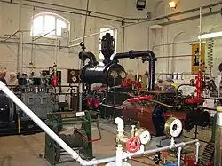 The boiler house originally housed four Babcock & Wilcox boilers. These were replaced in 1940 by two Babcock & Wilcox boilers. These were scrapped in 1964.[4] The boiler house currently houses various steam engines and exhibits related to water supply.