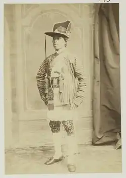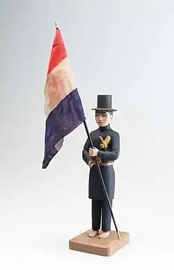 The clothing worn by the bregada keprajitan is an acculturation between Javanese, Islamic and European cultures. The VOC Governor for the East Coast of Java, Nicolaas Hartingh, reported that the court dress had adopted Islamic styles, such as white clothes and clerical turban, and carrying two krises. However, the paintings that appeared in the following period do not really indicate that Islamic elements were present in each soldier's uniform. European designs were only introduced during the time of Hamengkubuwana IV. Noticeable elements were the use of socks, shoes and hats.[19][4]
