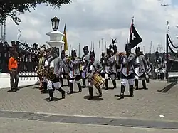 Bregada (Javanese: ꦧꦽꦒꦢ, romanized: bregada), more fully as bregada kaprajuritan is an art of soldiering that originated in the Mataram Sultanate. It adapts military elements to Javanese culture. Unlike other forms of soldiering, bregada usually appears as an army that is generally deployed during traditional ceremonies or folk festivals, such as Grebeg or merti dusun. The word bregada comes from the word "brigade."[1] There are currently 4 categories of bregada active in Yogyakarta: bregada Keraton Yogyakarta, bregada Keraton Surakarta, bregada Pura Pakualaman, as well as bregada formed independently by the community, called bregada rakyat (or People's bregada).