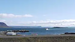 From the small port of Stykkishólmur on the Snæfellsnes peninsula, a ferry crosses Breiðafjörður to Brjánslækur in the Westfjords, stopping at the island of Flatey on the way. It is also possible to circle around Breiðafjörður overland, by car. If the weather is fine, it is possible to see the coastline of the Westfjords from the Snæfellsnes peninsula, at a distance of up to 40 km (25 mi).