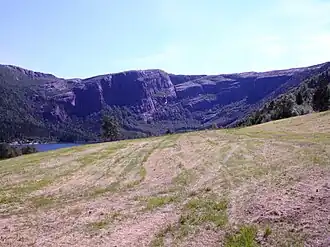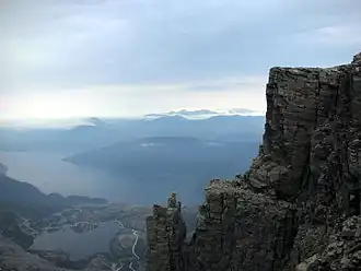 The legendary mountain cliff Hornelen is situated straight across the fjord from Vingen rock carving site. Many legends are linked to this mountain which is Europe's tallest sea cliff. It raises 860 metres (2,820 ft) over the sea and is a good landmark for ships. Over the centuries, it has been a well-known sailing mark. The trip to the top of Hornelen takes approximately 3 hours from Hunskår, or 4 hours from Berleneset.[36]