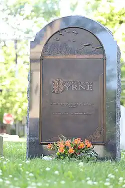 His funeral was held on January 8 at the Paper Mill Playhouse in Millburn, New Jersey.[28] Archbishop Joseph W. Tobin, then-Governor Chris Christie and Governor-elect Phil Murphy, former Governors Thomas Kean, Donald DiFrancesco, Jim McGreevey, Richard Codey and Jon Corzine and U. S. Representative Bill Pascrell were in attendance.[29] Byrne's remains were cremated and his ashes were interred in Princeton Cemetery.