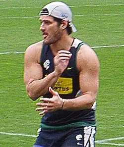 Fevola was recruited to Carlton Football Club with selection No. 38 overall in the 1998 AFL Draft and made his debut in the 1999 AFL season.[5] Early in his career he showed signs of being a brilliant kick of the ball and a prospective key-position player at full-forward, and he led the AFL reserves for the 1999 season with 42 goals despite Carlton finishing last for the year.[6] During a pre-season game on 31 December 1999 against Collingwood (promoted as the "Millennium Match"), he kicked 12 goals.[7]