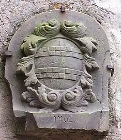 In 1642, a Franz Günther, a simple farmer's son from Kützberg by Schweinfurt, was ennobled with the family name “Günther von Brennhausen” and given the fief of Brennhausen from the Bishopric of Würzburg. From 1635 to 1647, Franz was the Commandant of the fortress at Königshofen. Franz’ son Hans, also a distinguished military man, received Brennhausen. Hans and his second wife Felicitas Agnes Leschin von Mülheim coat of arms are in the courtyard. The transfer to their minor son, Johann Georg Hartmann Günther von Brennhausen, upon Hans' death was held up in court in part due to Felicitas Agnes being Protestant. The 1675 case was eventually won in 1679 and invested in 1680, only to have Johann Georg Hartmann pass away in 1681.