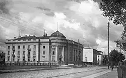 The city was developed significantly and a number of representative public buildings were erected in Neoclassical and Modernist styles, especially at Ulica Unii Lubelskiej (Union of Lublin Street, now Lenin Street), including the Bank of Poland, Tax Chamber, Regional Chamber of the State Control, Healthcare Fund and Voivodeship Office.[33] Other notable projects include the officials' housing estate, stylistically inspired by historic manor houses of Polish nobility and the garden city movement, and the Warburg Residential Colony, dedicated to poor Jews who had lost their homes in World War I, founded by Felix M. Warburg, chairman of the Joint Distribution Committee of American Funds for Jewish War Sufferers.[34] In 1929, city limits were greatly expanded.[35][36]