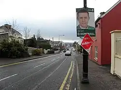 An Ó Domhnaill election poster on Stranorlar main street during the 2010 Donegal South-West by-election.