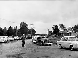 In July 1961, construction on the bridge begun and piles were driven into the river bed. There were 206 (25 meters, 82 ft long) concrete piles installed for the bridge. At the centre of the bridge was a 7.3-meter (24 ft) clearance for small boats during low tide. On 19 October 1963, Bribie Island Bridge was opened by Queensland Premier Frank Nicklin, who also was the first person to pay for a toll, while the toll operator was Jack Greenhalgh. At the time, the bridge was one of the longest concrete bridges in Australia. The population of Bribie at the time was 500 residents, and the car ferry cost was an expensive price of 10 shillings. The bridge toll was $1 ($14.70 in today's money), which was considered expensive. This resulted in a public outrage, and the Celebrate Committee was disbanded. Despite the disappointment, in the first week, 14,000 cars paid the toll to cross the bridge. It was looked as if the opening event would be boycotted, however, a procession of floats, horse-drawn carts, vintage cars, marching bands, and large crowds drove over the bridge to the island for the first time.[1] Shortly afterwards, residents found out that the infrastructure and amenities such as parking, toilets and street signage were inadequate, and not up to expectations. Because of these factors, residents commonly demanded concessions and reductions. Shortly afterwards, the bridge earned the nickname, the “Ned Kelly Bridge” as it was felt as a highway robbery.[5]