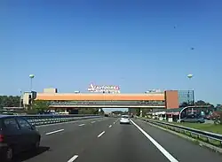 The concept was introduced to Europe in 1959 by the Italian architect Angelo Bianchetti,[2] who built the first European bridge restaurant in slightly more than six months. In 1962, Pavesi replaced its existing roadside restaurants at Novara and Bergamo along the Autostrada Serenissima by bridge restaurants at Novara and Osio. This was done in conjunction with the upgrade of the three-lane highway to motorway standards. Bianchetti built nine bridge restaurants for his principal, the Italian food chain Pavesi. Three Pavesi bridges, Chianti, Dorno and Serrevalle-Pistoiese, were built by other architects. The concept was replicated by Pavesi's competitor Motta, who built two bridges at the Cantagallo[3] and Limena[4] rest areas and later on spread over Europe. In 1974 the Italian chains were heavily affected by the oil crisis and as a result, no more bridge restaurants were built in Italy. In 2012 there are 13 bridge restaurants left in Italy. In 2021 the most daring Autogrill in the world (Montepulciano) was demolished due to structural problems after 50 years of service.