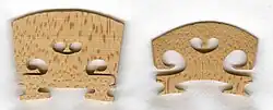Bridges may consist of a single piece of material, most commonly wood for violins and acoustic guitars, that fits between the strings and the resonant surface. Alternatively, a bridge may consist of multiple parts. One common form is a bridge with a separate bearing surface, called a saddle, that supports the strings. This is often of a material harder than the bridge itself, such as bone, ivory, high-density plastic, or metal. Some acoustic guitar bridges have multiple materials, such as a bridge support and "feet" made of wood and a plastic or bone "ridge" where the strings are positioned against.