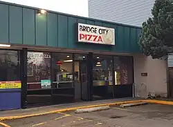 Bridge City Pizza is a restaurant serving Chicago-style pizza and sandwiches in southeast Portland's Woodstock neighborhood. The delivery-focused business has a small storefront and counter with six stools available for on-site dining, as of 2016.[1][2] Behind the counter are painting depicting Al Capone and The Blues Brothers.[3]