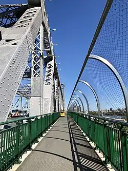 Suicide prevention barriers were installed on the Story Bridge in 2013; a three-metre-high barrier runs the full length of both sides of the bridge.[10]