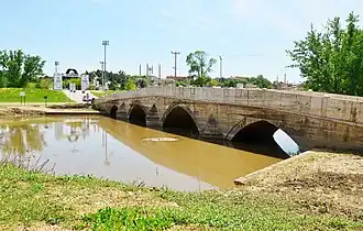 Edirne, which was the Turkish capital till 1453, is positioned on the main transit route linking Europe and Asia Minor.[1] Because the older part of city is positioned inside a large semi-circular loop in the Tundzha River, which at this point is wide but usually shallow, several stone arch bridges have been built to cross it to the north, west and south of the city. Starting from the north, and following the river's flow in an anti-clockwise direction, these bridges are as follows: