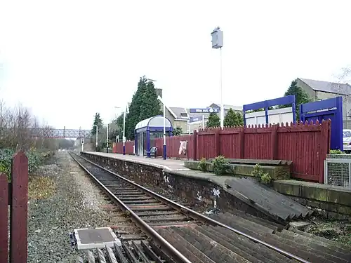 The signal box (which was built in 1876 and latterly only operated the adjacent level crossing) was abolished and dismantled in September 2014, when the crossing was converted to automatic operation under the remote supervision of Preston PSB.[4] The box structure has been donated to a local arts organisation (In-Situ) and is to be rebuilt nearby at Brierfield Mills.