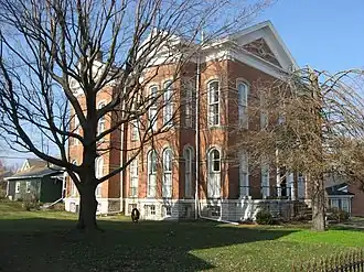 Bright B. Harris House is a historic home located at Greensburg, Decatur County, Indiana. It was built in 1871, and is a large 2+1⁄2-story, Italianate style brick dwelling. It has a low pitched gable and hipped roof, ashlar limestone foundation, and round arched windows.[2]: 5
