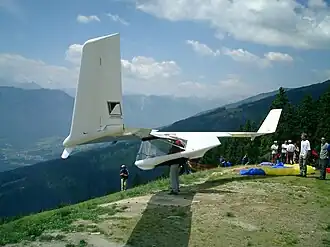 The Aériane Swift[2] is a lightweight (48 kg) foot-launched tailless sailplane whose rigid wings have a span of 40 feet (12 m). The Swift has been succeeded by the "Swift'Lite".