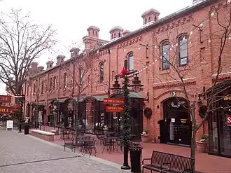 Watts and Yuille Warehouses, also known as Brightleaf Square, are two historic tobacco storage warehouses located at Durham, Durham County, North Carolina. They are part of the Bright Leaf Historic District. They were built in 1904, and are two identical buildings parallel to each other with a courtyard in between. They are two-story Romanesque-style brick structures, seven bays wide and twenty bays long. Each unit of the warehouses is 75 feet by 118 feet, for a total of 35,400 square feet on each floor. They are an example of "slow burn" masonry and wood factory construction. They were among the 12 brick tobacco storage warehouses erected by The American Tobacco Company trust beginning in 1897.[2] The buildings have been converted to retail and office use.