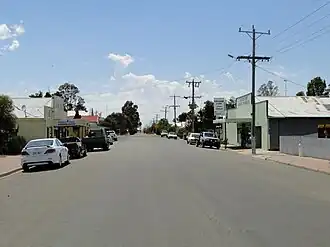 The Post Office opened on 3 October 1890.[2] The railway arrived in 1893 on the line from Murtoa to Hopetoun. The railway station is no longer standing, but there are large grain silos on the railway station site. The railway tracks were converted to standard gauge in 1995 to allow large trains carrying mineral sands from Hopetoun to Hamilton.[3]