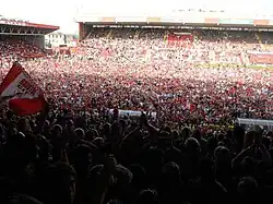 In the past plans were considered for expansion work to be carried out at Ashton Gate. There were also proposals to build a new 36,000-seat stadium at Hengrove Park. This was turned down in a local referendum in December 2000.[47] In 2002, the local council was looking at possible sites for a new 40,000-seat stadium which would house both City, Rovers and Bristol Rugby, but these plans were scrapped and it is widely accepted that this would not have been welcomed by the majority of supporters from all clubs.[48] Ashton Gate's current capacity is an average size for Championship grounds; however, in November 2007 the club announced plans to relocate to a new 30,000-capacity stadium in Ashton Vale. Plans were also in place to increase capacity to 42,000 had England's 2018 World Cup bid been successful.[49][50]
