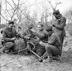 During the course of 1937, the division was mechanised and reorganised in line with new thinking. This saw each brigade decreased from four to three battalions, anti-tank companies added, and saw the arrival of Universal Carriers and more transport to make the infantry more mobile.[27] In September, army manoeuvres were conducted in East Anglia to test the changes. The 1st Division played the role of insurgents who had seized London (portrayed by Norwich) who were then attacked by pro-government forces who were portrayed by the 2nd Division.[28]