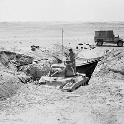 The British tank force consisted of the slow and heavily armed infantry tank, together with the faster and lighter cruiser tank. The cruiser tanks were intended to operate independently of the slow-moving infantry and their heavier infantry tanks. The British doctrine at the time did not foresee the armoured division having a role in its own right and was assigned the traditional cavalry role. They would then deploy independent tank brigades equipped with the infantry tanks to operate with the infantry.[5] German panzer and light divisions were equipped with the latest Panzer III and Panzer IV tanks, which could outgun all British tanks.[75] By 1942, American Grant and Lend-Lease Sherman tanks entered British service.