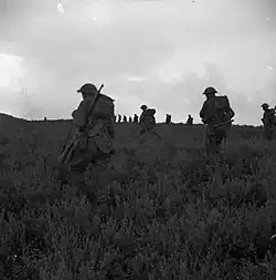 Furthermore, 35,000 men from the RAF Regiment and the Royal Artillery were transferred to the infantry and were retrained as rifle infantrymen, where the majority of combat casualties fell.[14][15]