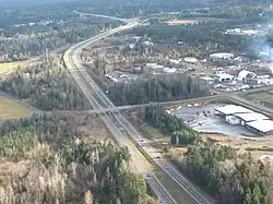 | 0.27 | 0.17 | (0) | private road – Harmac Sawmill | At grade, traffic signals; no westbound exit | |||
