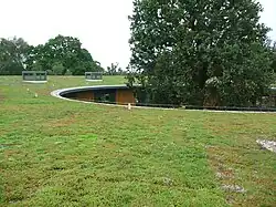 The 2200sqm roof took around 3 weeks to install in the summer of 2010. The green roof featured a specialist drainage and filter layer, topped with extensive substrate and a pre grown sedum blanket. The roof provides insulation to the building, helping it stay cool in the hot summer months and warm during the winter.[35] Studies show that a thick layer of vegetation can increase the efficiency of the roof by up to 60%.[36] The rural location meant the green roof helped to reduce the aesthetic impact of the building and blended it into its surroundings.