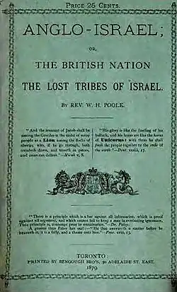 31. ^ Poole, William Henry (1879). Anglo-Israel; Or, The British Nation the Lost Tribes of Israel. Bengough Bros. p. 23. ISBN 978-1330950692. {{cite book}}: ISBN / Date incompatibility (help)