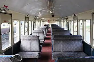 The 116 fleet and its variants were extensively refurbished in the late 1970s. The carriages were renovated with new interiors including gangways, improved lighting and improvements to the onboard heating. The work was awarded to BR Swindon.[20] The type was subsequently seen in use everywhere from Tyneside to Devon.[21]