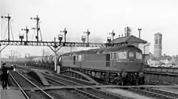 With the introduction of the winter timetable in September, the class were largely withdrawn from passenger service due to carriages still being heated by steam. Some trains were worked by steam locomotives and others by the Type 2 locomotives. Occasionally the class worked unheated passenger trains.[14] D6504 was used for ETH tests on the Eastern Region of British Railways. It was exhibited at Stratford, London on 17 and 18 February in connection with a committee meeting of the UIC. The locomotive hauled trains between London King's Cross and Edinburgh Waverley between 13 and 17 February.[18] Phase 2 of the electrification scheme came into service on 12 June 1961.[46] The last of the second batch of locomotives, D6564, was delivered on 28 July. Delivery of the fourth batch of locomotives took place between 18 August and 12 January 1962.[20]